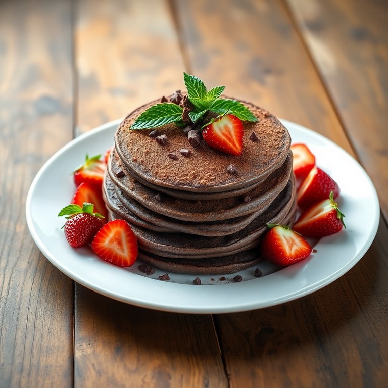 Panquecas de Chocolate com Morangos Frescos e Maizena