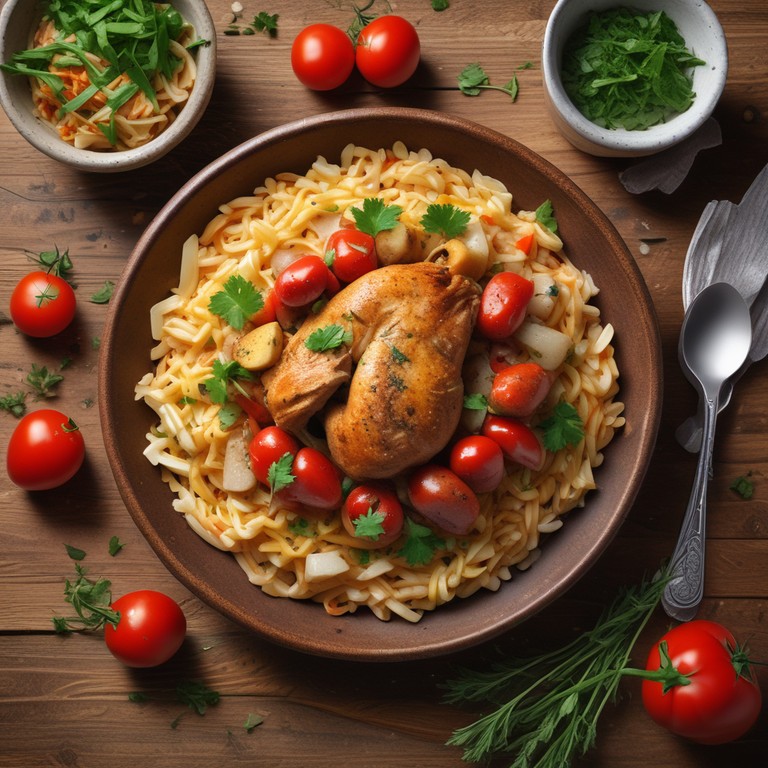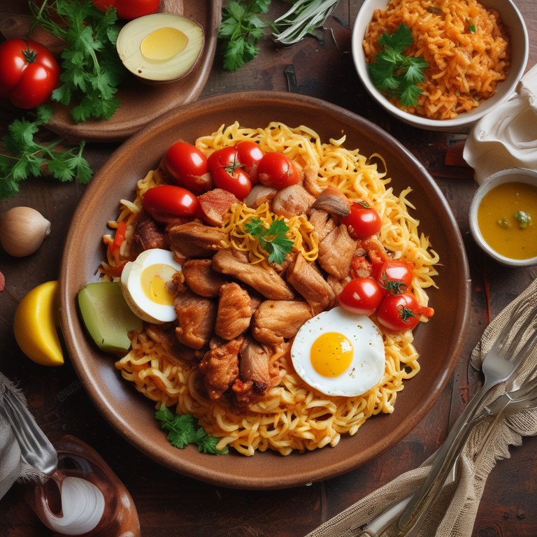 Arroz con Pollo y Fideos en Salsa de Tomate