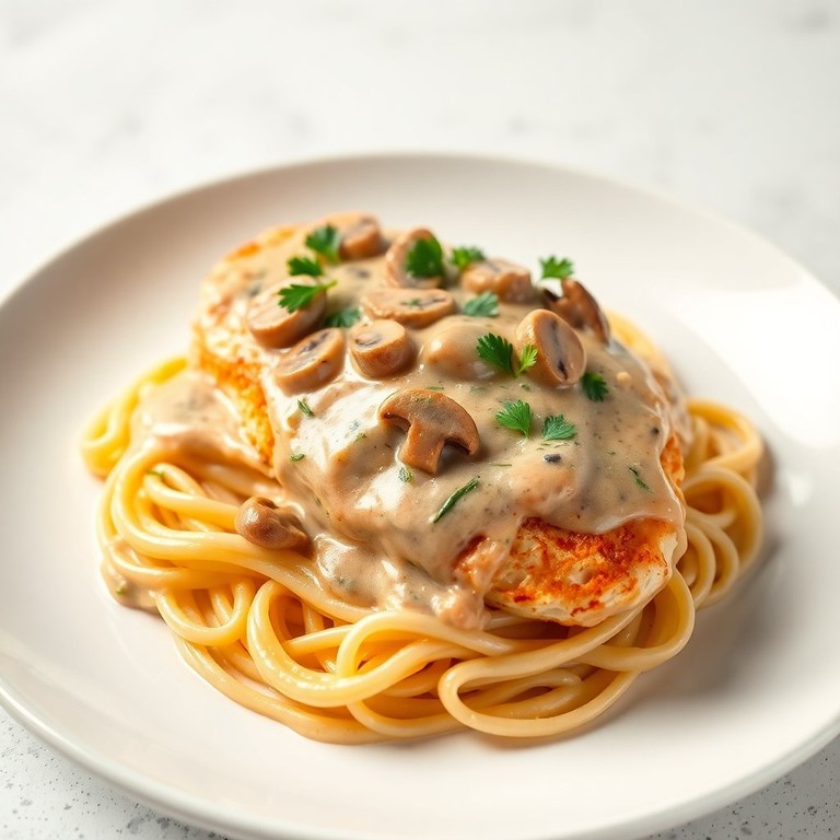 Pechuga de Pollo en Salsa de Hongos con Pasta Cremosa