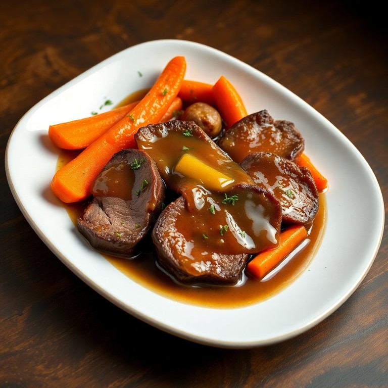 Carne Babilla Glaseada con Mantequilla y Zanahorias Caramelizadas