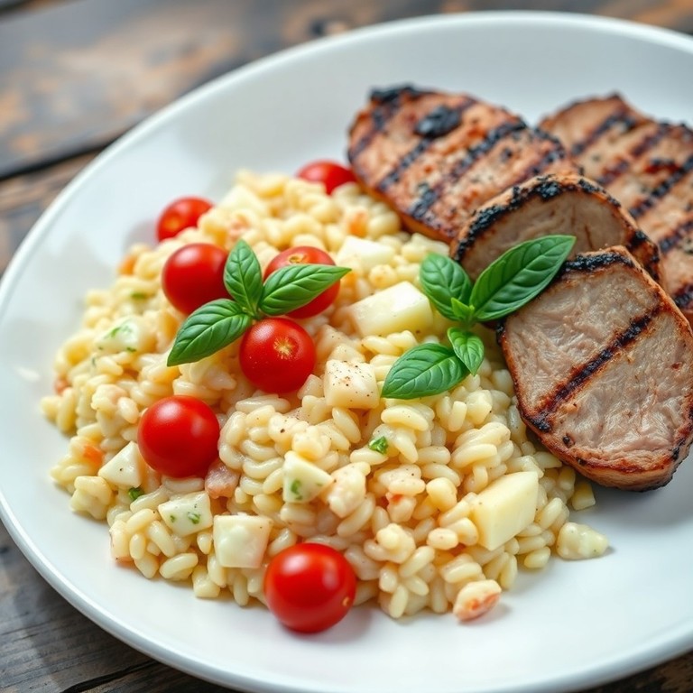 - Risotto de manzana y queso con lomo de cerdo a la parrilla