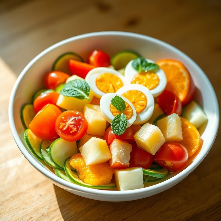- Ensalada Fresca de Manzana y Naranja con Tomates y Calabacín