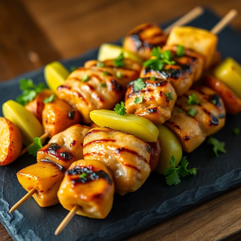 Brochetas de Pollo, Apio y Papas a la Parrilla con Adobo Cítrico