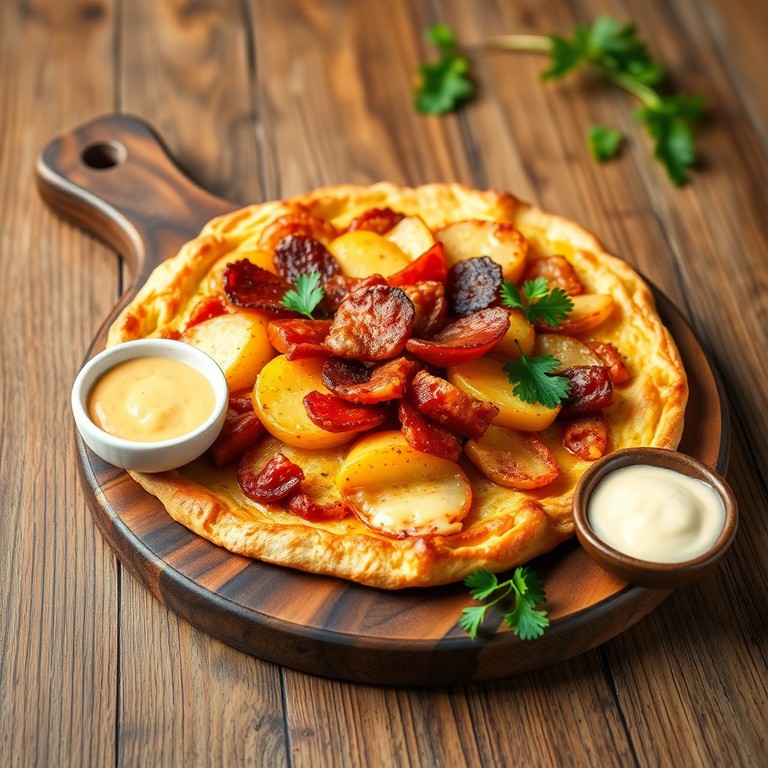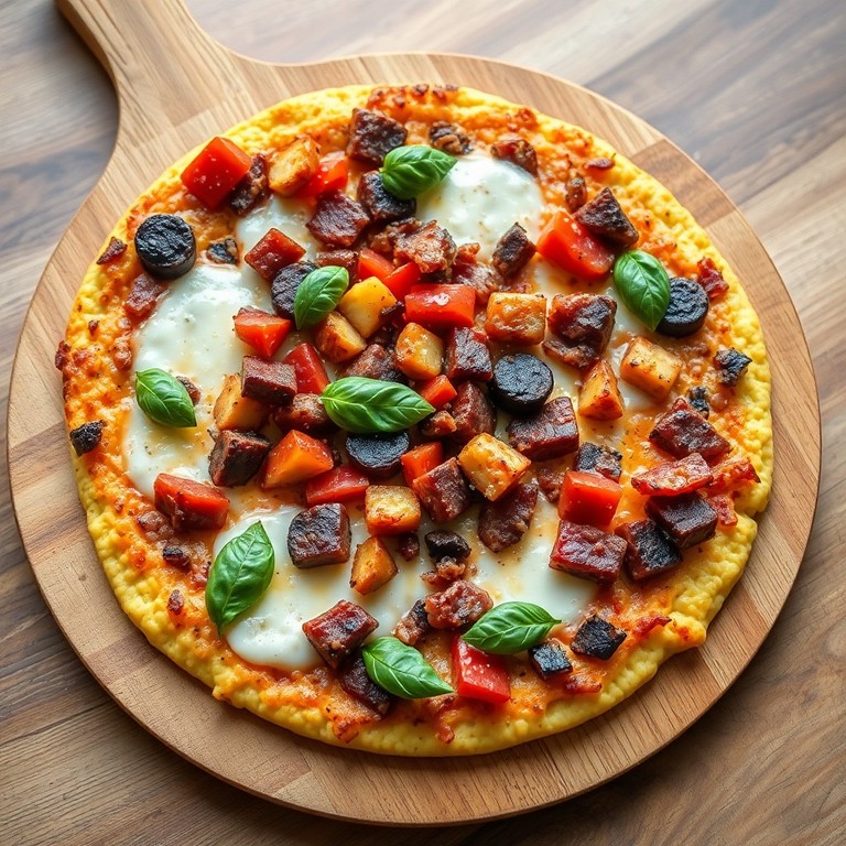 Pizza de Polenta con Salchicha, Tocino, Mozzarella y Vegetales Asados