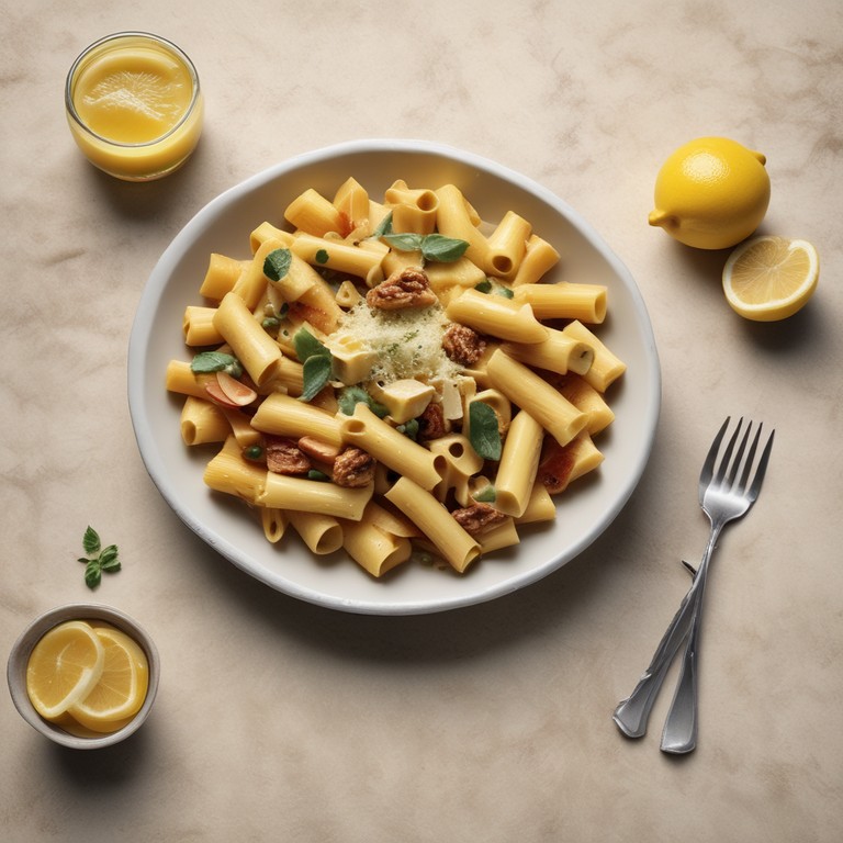 Rigatoni Reaquecido com Molho de Limão e Nozes