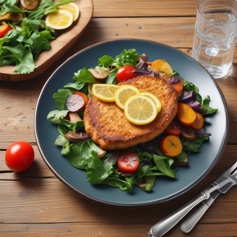 Milanesa con Verduras Asadas y Ensalada de Espinacas