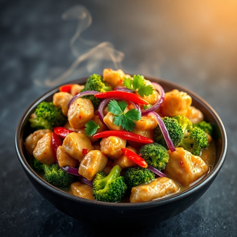 - Salteado de Pollo y Brócoli al Estilo Tailandés con Salsa de Cacahuete Ligera