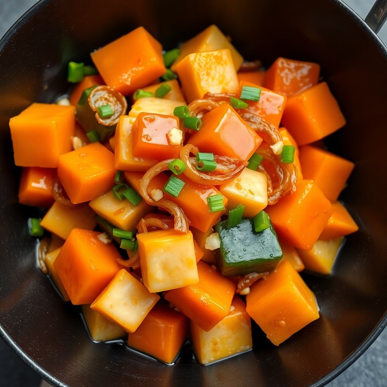 Xuxu ao Estilo Asiático com Alho e Cebola Caramelizada