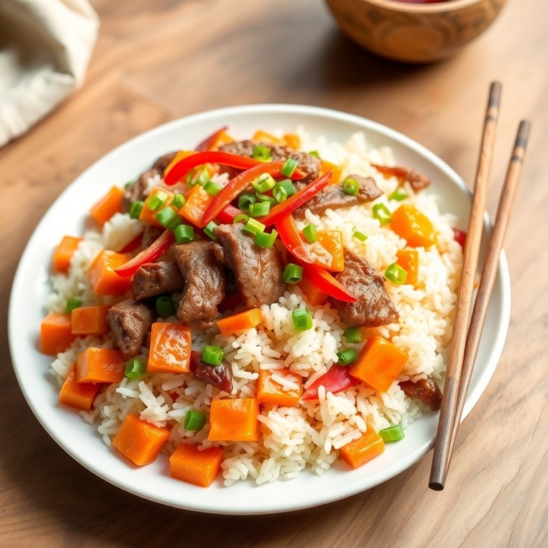 Arroz frito al estilo asiático con carne y jengibre