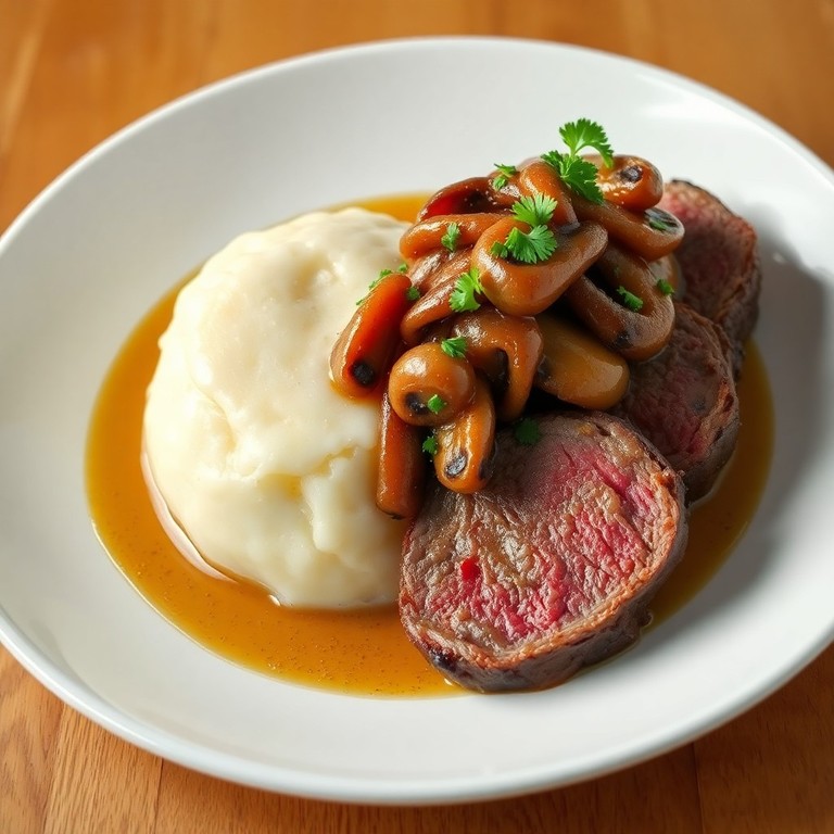 Lomo Asado con Cebolla Caramelizada y Puré de Papas
