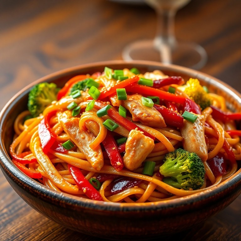 Fideos Chinos Salteados con Pollo y Verduras en Salsa de Soja