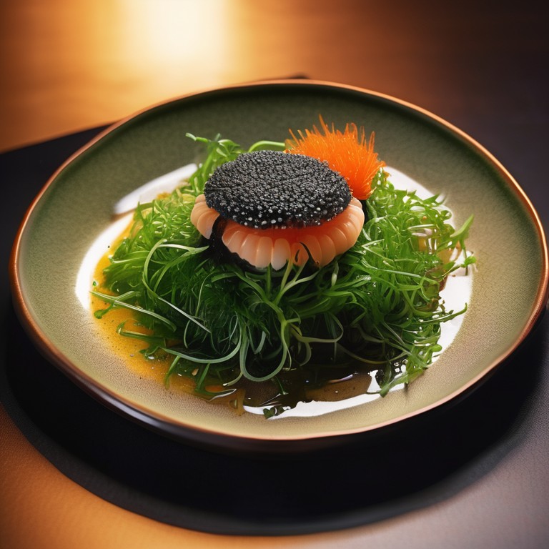 Seared Sea Anemone on a Bed of Wakame Seaweed