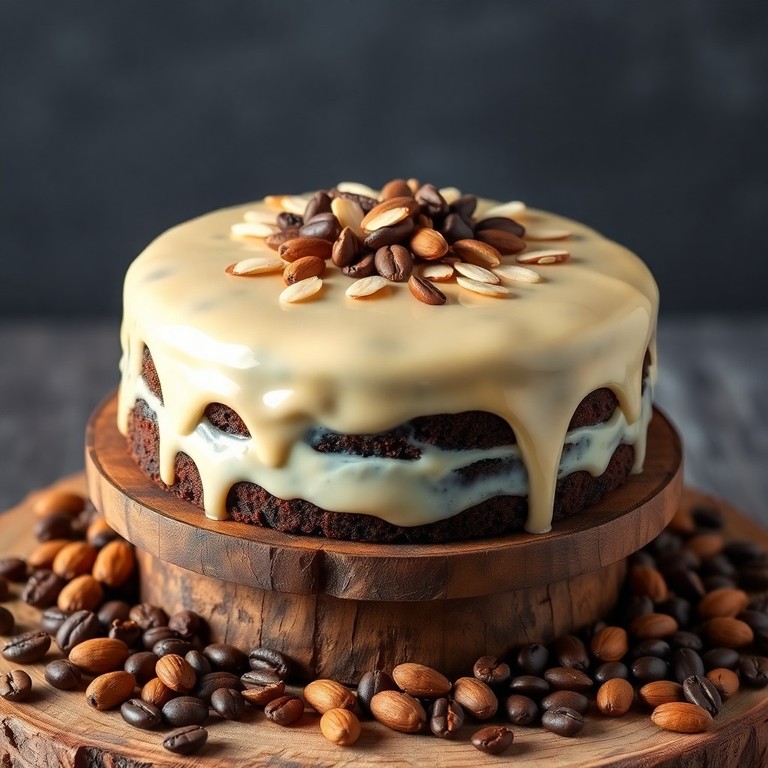 - Pastel de Chocolate, Café y Almendras con Glaseado de Vainilla