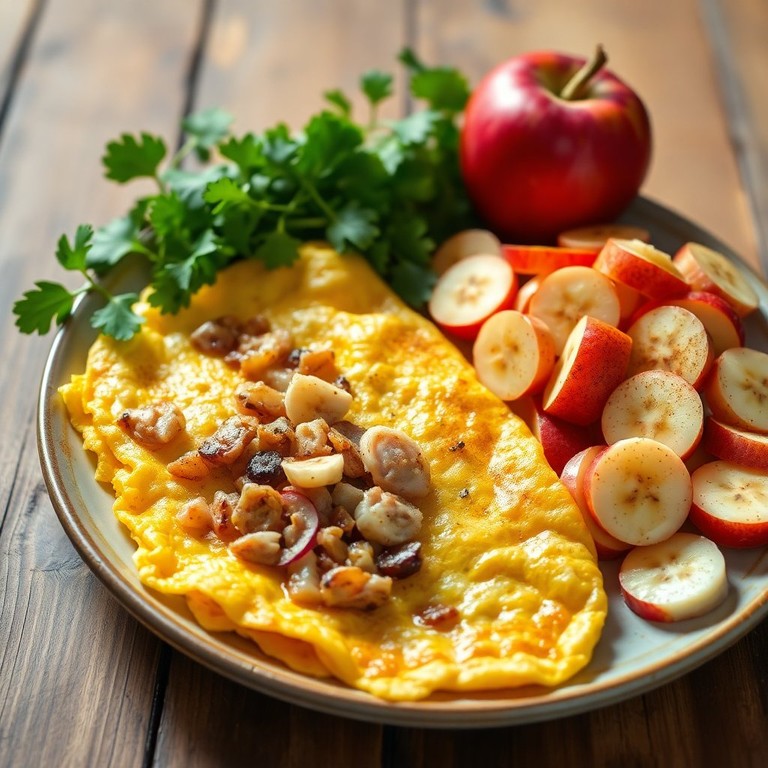 Desayuno Saludable de Tortilla de Pavo y Frutas Frescas