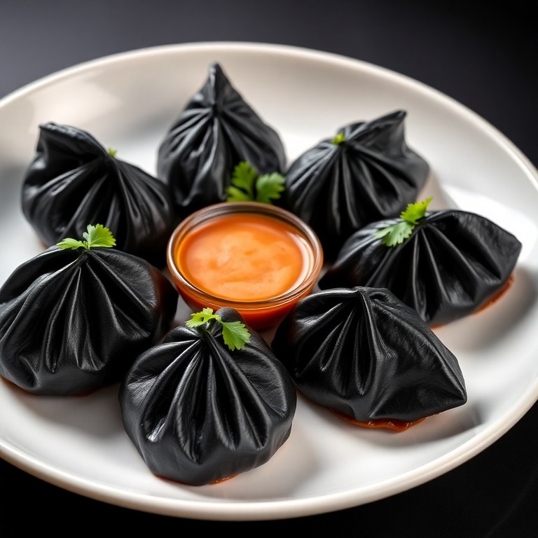 - Dumplings Negros con Salsa Sancaya Oriental y Cerdo