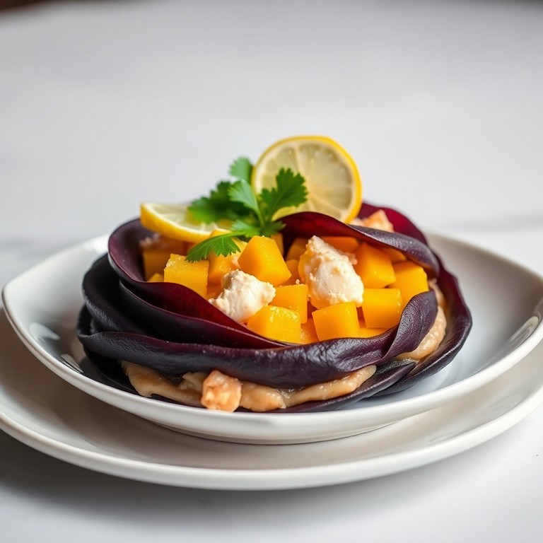 - Causa de Mashua Negra con Relleno de Cangrejo y Mango