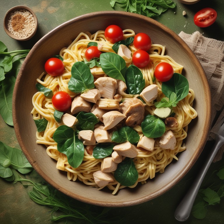 Pasta de Pollo con Espinacas, Champiñones y Toque Asiático