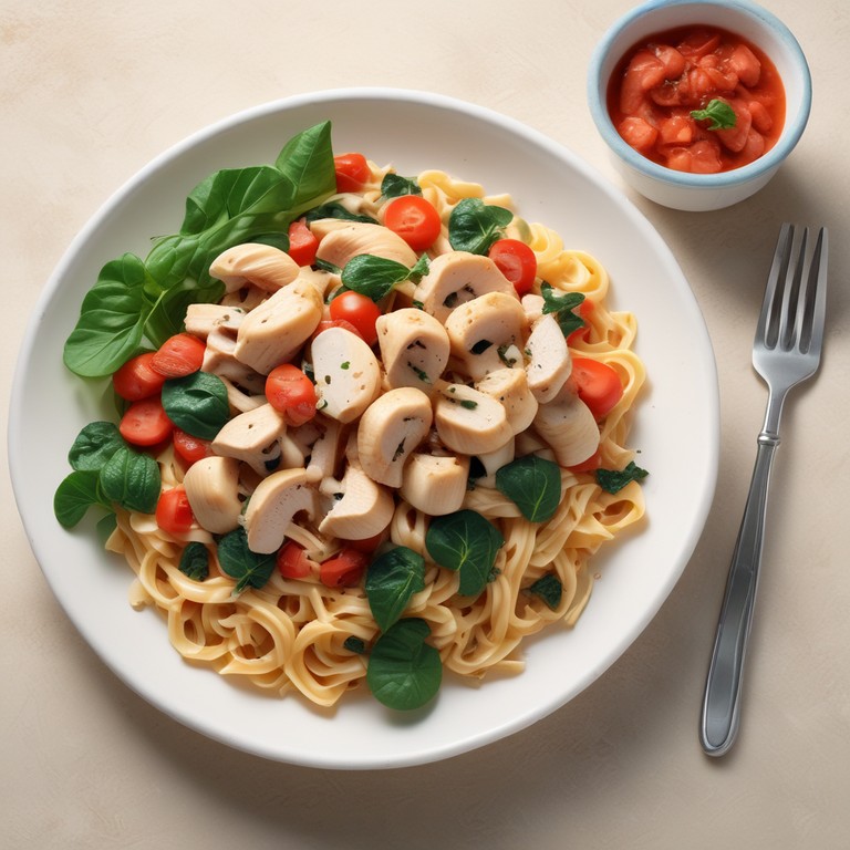 Pasta de Pollo con Espinacas y Champiñones