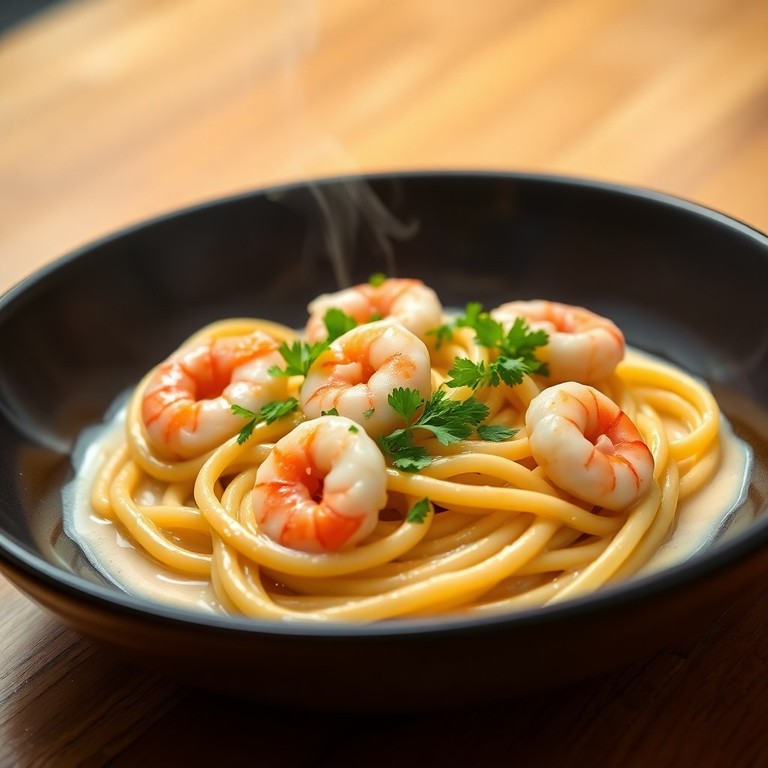 Garnelen-Trüffelöl-Pasta mit cremiger Soße