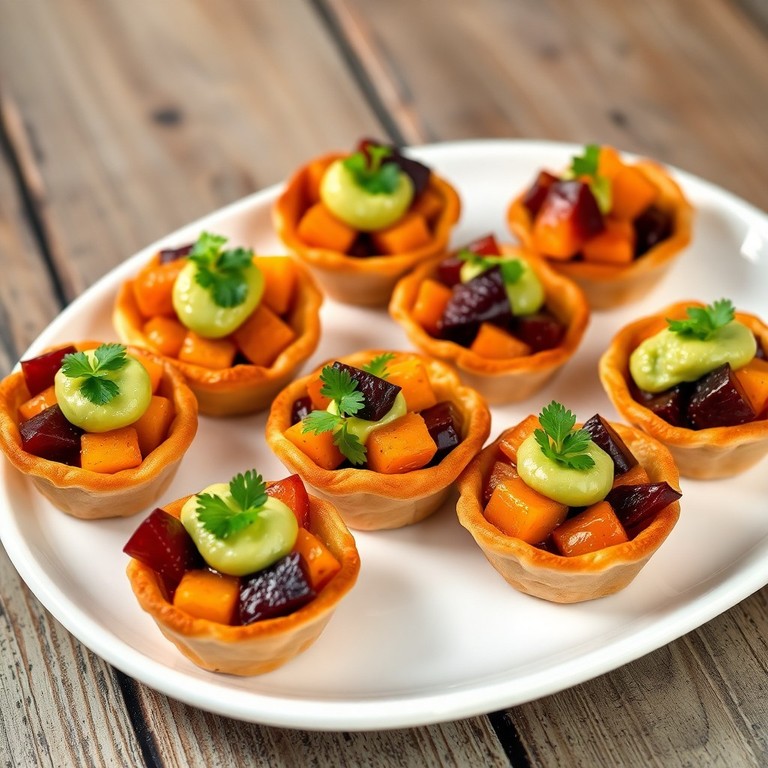 Mini tartaletas de hojarrasca con camote glaseado y beterraga