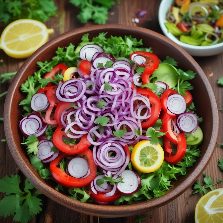 Ensalada Fresca de Cebolla, Tomate, Pepino y Cilantro