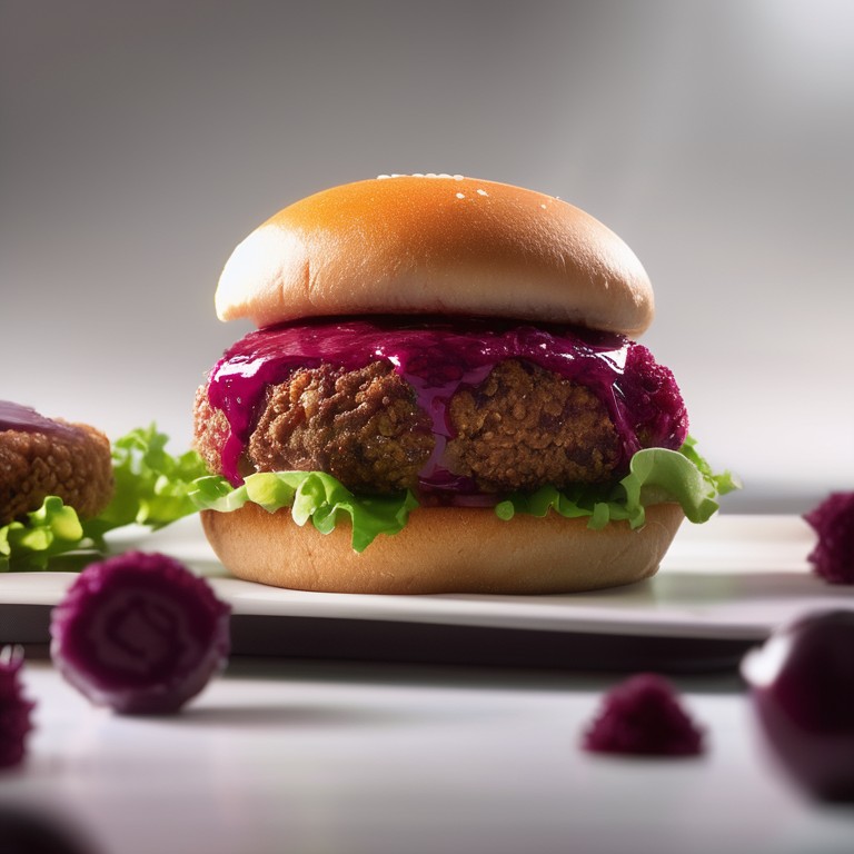 Hamburguesa Inspirada en Deadpool con Queso Apanado en Cereal y Salsa de Remolacha