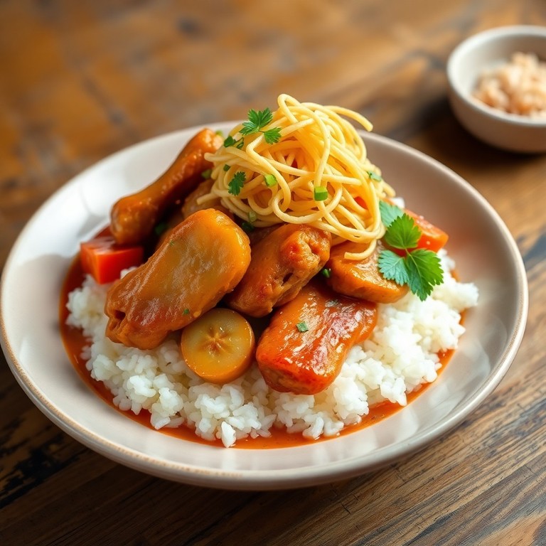 Sudado de Alas de Pollo con Plátano y Crujiente de Fideos