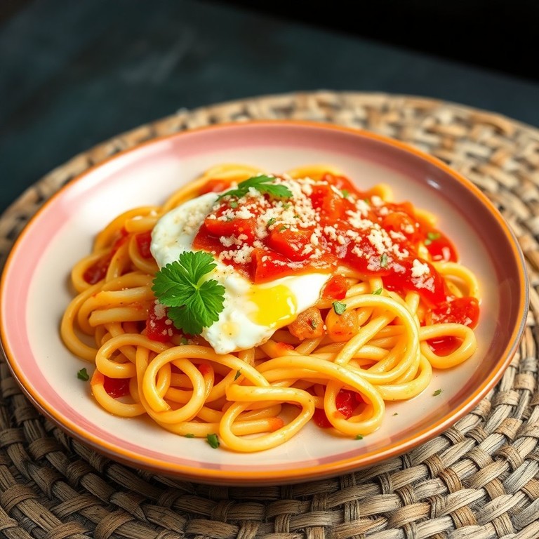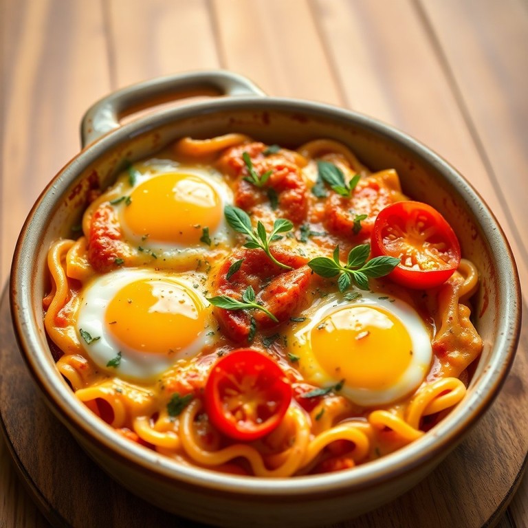Fideos al Horno con Tomate, Huevo y Queso Fundido