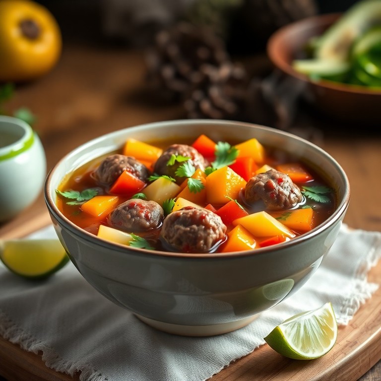 Caldo de Albóndigas y Verduras Completo