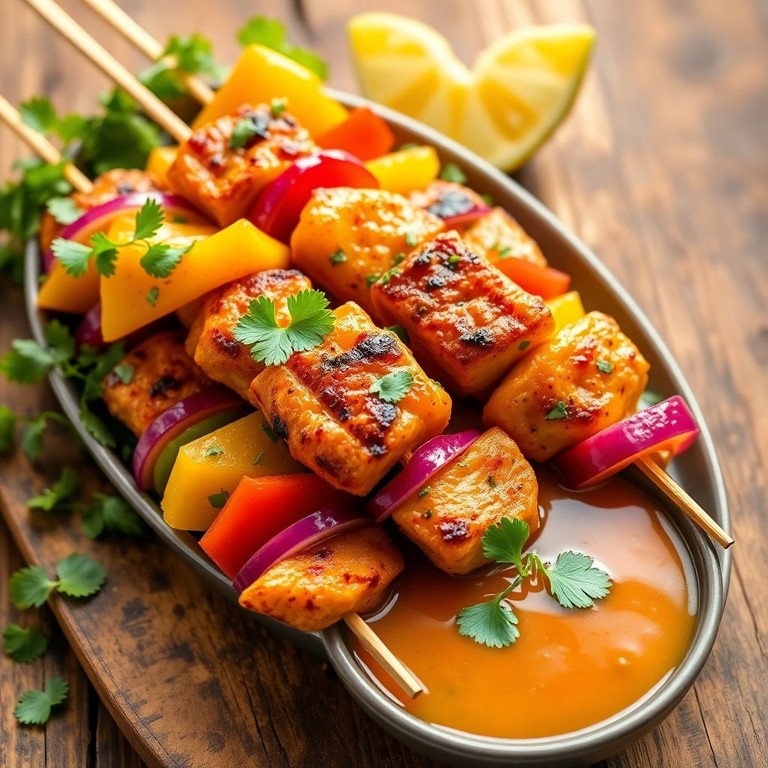 Brochetas de Pollo Tropical con Salsa de Piña