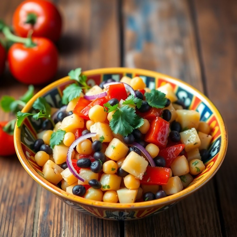 Ensalada Fresca de Garbanzos y Tomate con Papas y Frijoles