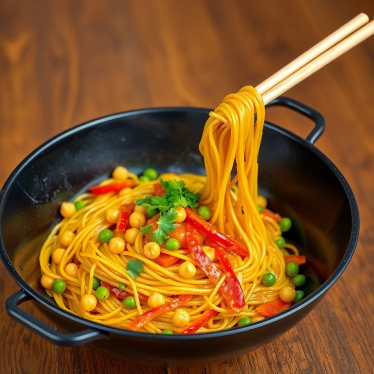 Salteado Indio de Fideos Maggi al Curry con Garbanzos