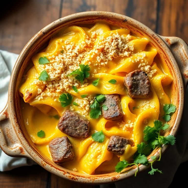 - Gratín de Pasta y Solomillo a la Huancaína con Parmesano