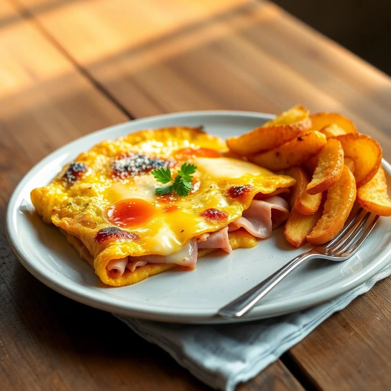 Tortilla de Jamón y Queso con Papas Doradas