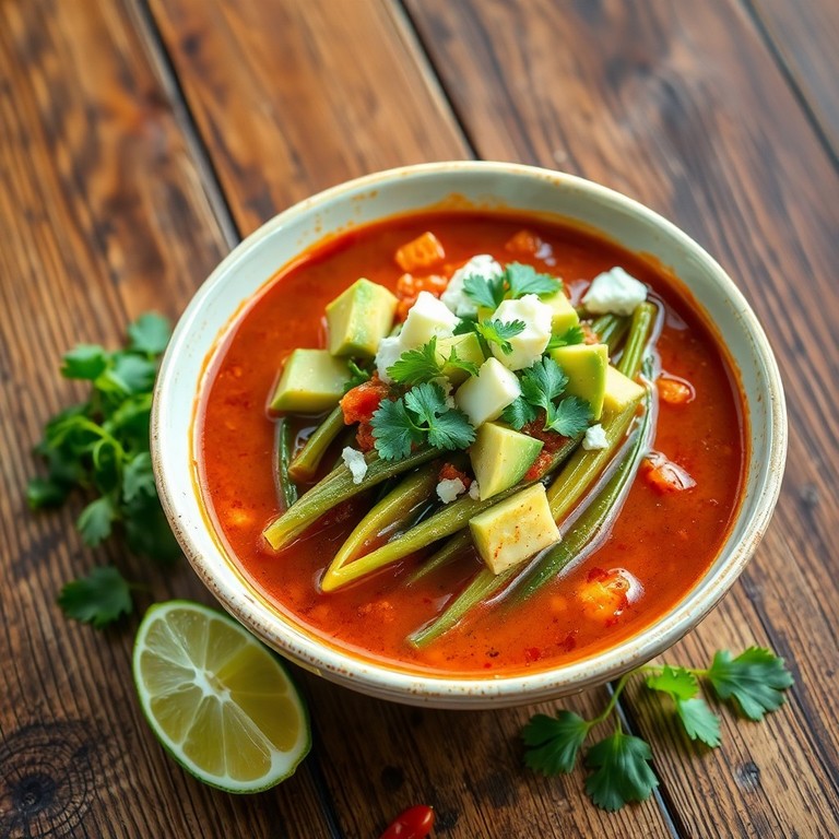 Nopales en Caldo de Chipotle con Queso y Aguacate