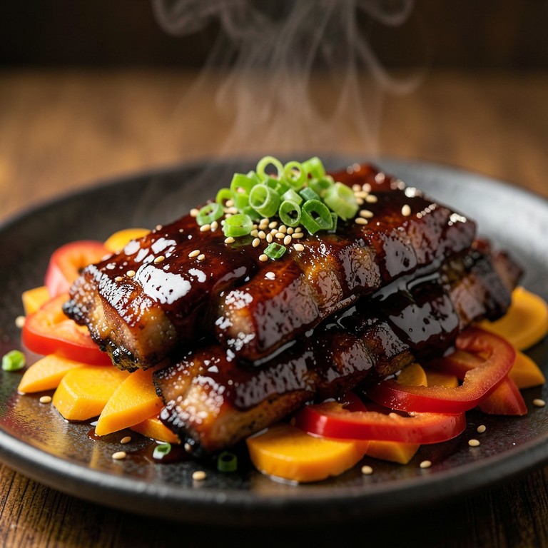 Costillas de Cerdo Glaseadas al Estilo Chino con Zanahoria y Cebollín