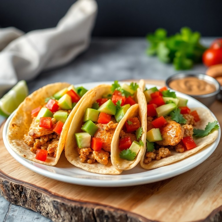 Tacos de Pollo, Aguacate y Tomate con Salsa de Lentejas
