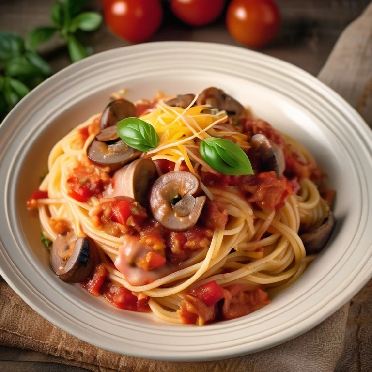 Espaguetis con Salsa de Tomate y Salchicha Ahumada