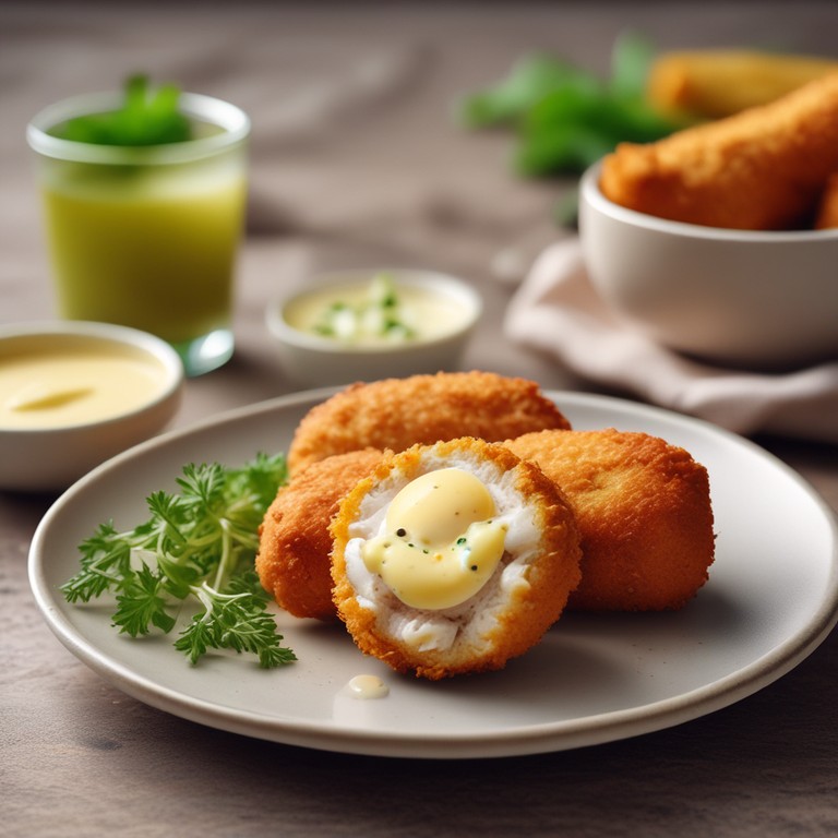 Croquetas de Pollo con Queso y Salsa