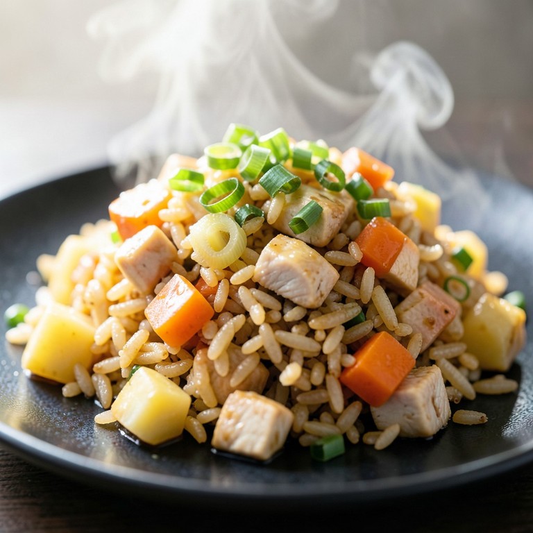 Arroz Frito de Pollo Estilo Oriental con Papas y Zanahorias
