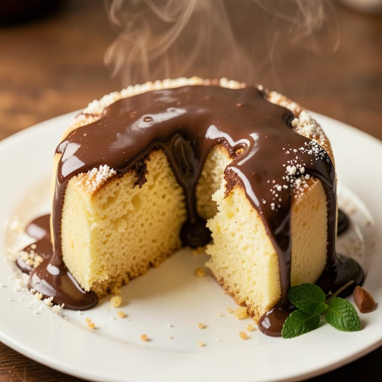 Bolo Cremoso de Leite em Pó Sem Ovos com Calda de Chocolate