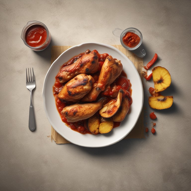 Pollo a la Plancha con Salsa de Tomate y Plátano Frito