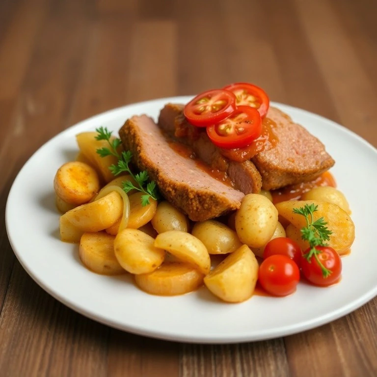 Lomo de Cerdo a la Salsa Inglesa con Papas Asadas