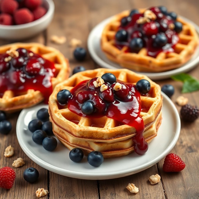 Gofres de Arándano con Salsa de Frutos Rojos y Nuez