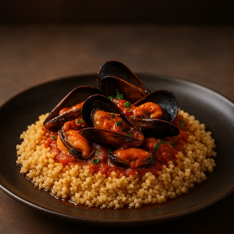 - Cous Cous con pimiento verde y mejillones en salsa de tomate