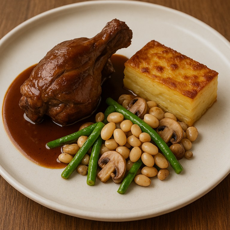 - Cordero Braseado en su Jugo con Gratin de Papa y Huerto Salteado
