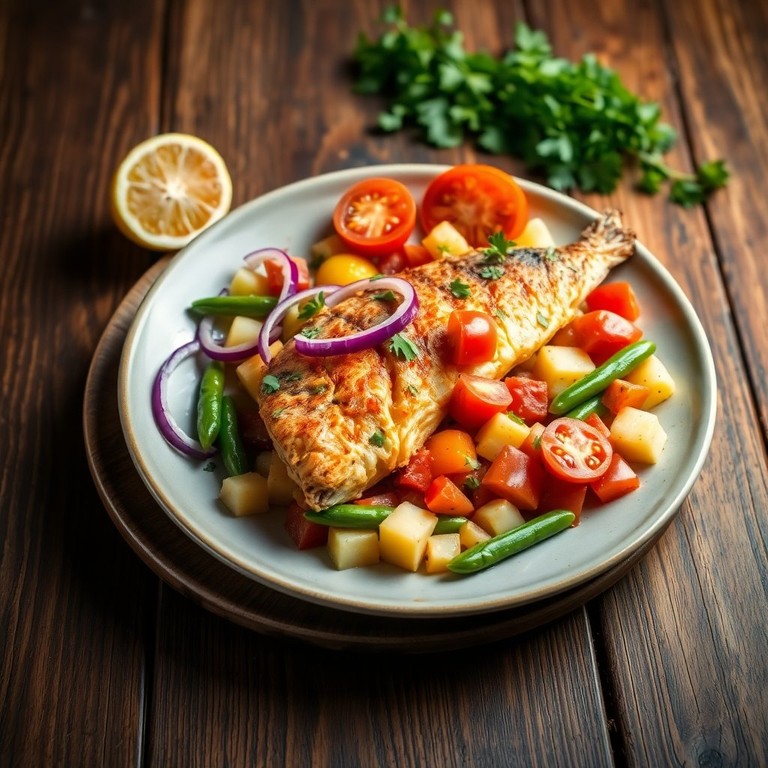 Pescado a la Veracruzana con Ejotes y Papas