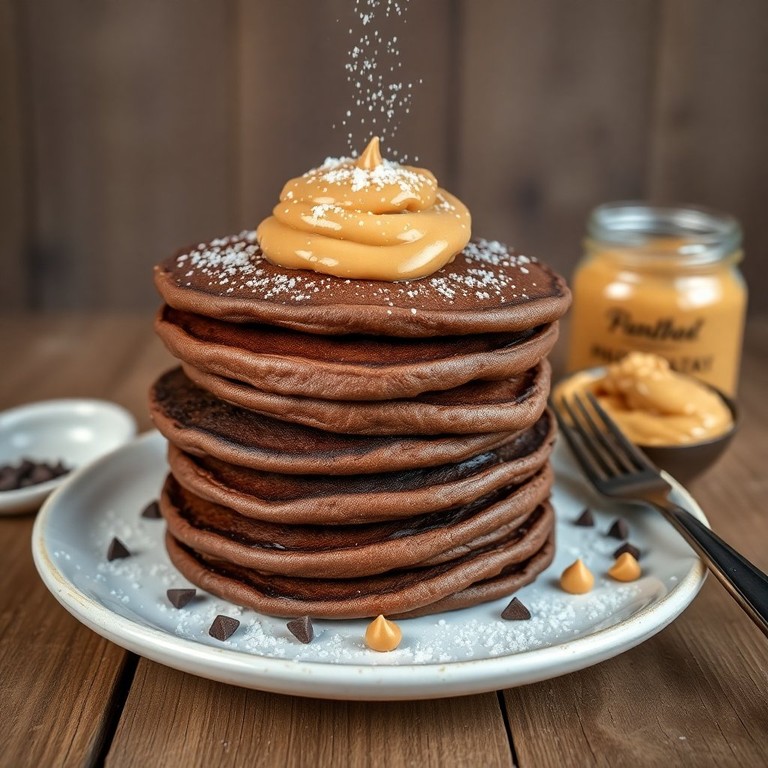 Panqueques de Chocolate con Crema de Cacahuete y Azúcar