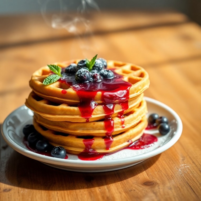 Waffles Clásicos de Arándanos con Coulis de Frutos Rojos