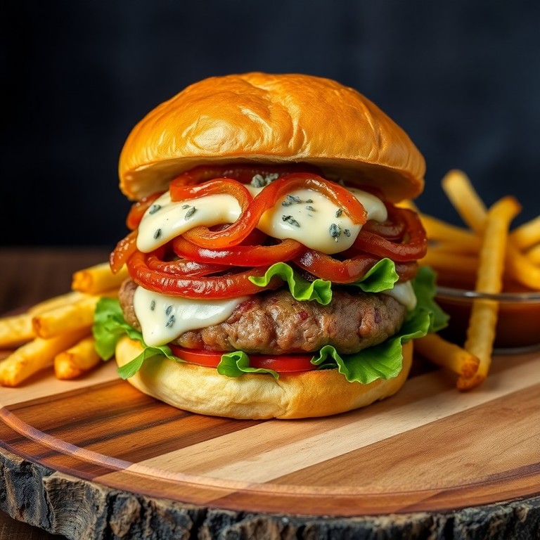 Hamburguesa Gourmet con Queso Azul y Cebolla Caramelizada